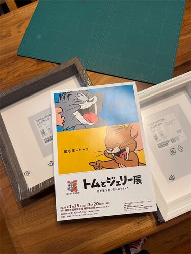 以前も触れた誕生85周年記念トムとジェリー展、 福岡はもう終わって今は名古屋です。 このテーマ「君が笑うと、僕も笑っちゃう」が本当に尊い…。 妹ともちゃん宅がフライヤーを飾っていて羨ましかったので真似したいと騒いだくせに、2月にともちゃんが持って…