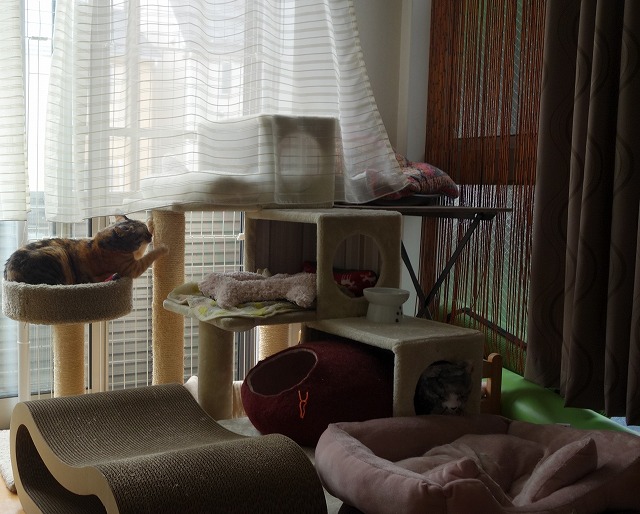 しじたんは、立ち姿でバリバリ爪とぎ。おしりをプリプリさせながら一生懸命研ぐのですがなかなか、「キメ顔」以外ななかなか写真は撮らせてくれません。